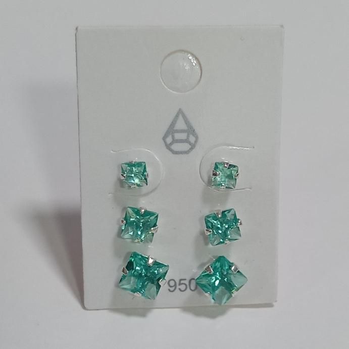 Trio Zircônia Quadrada Verde Água